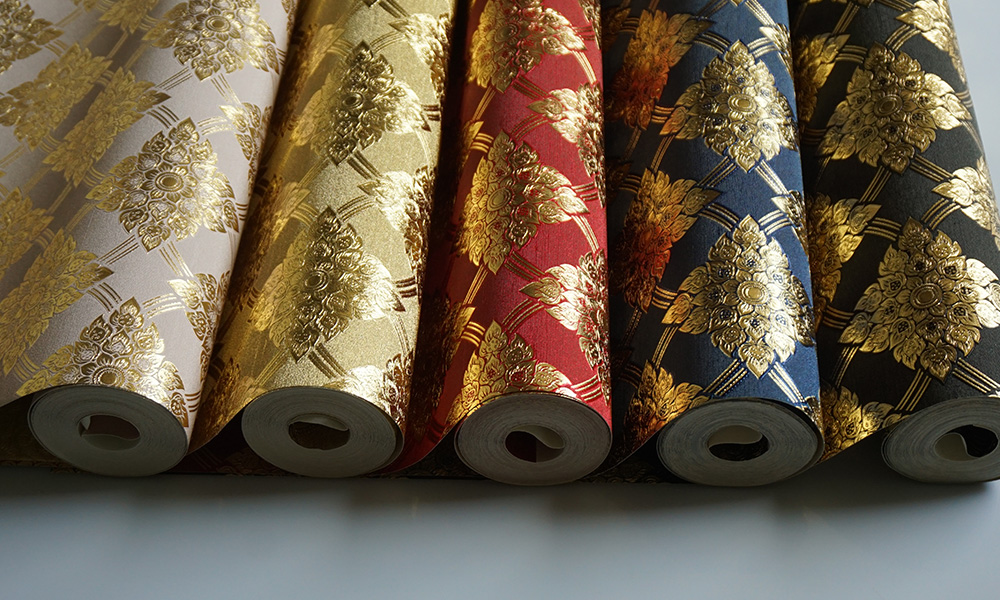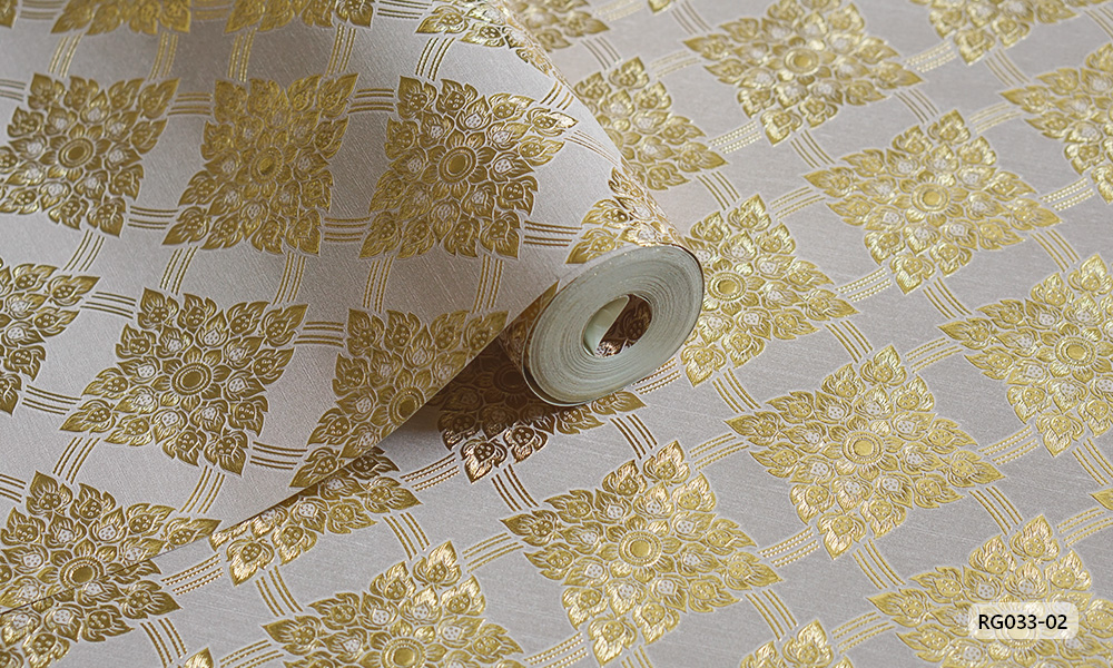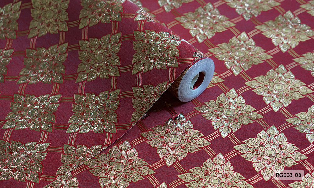 วอลเปเปอร์ติดผนังลายไทย คอลเลคชั่น “ลายไทยเฮอริเทจ (Line Thai Heritage)” รุ่นใหม่ล่าสุด ที่มาพร้อมกับเทคโนโลยีการกดลายแบบ Register Embossing + ฟอยล์ทอง ทำให้ได้ลวดลาย และเท็กเจอร์ที่มีมิติ หรือผิวสัมผัสนูน หรูหรา ช่วยเพิ่มคุณค่าให้กับสถานที่ที่ทำการตกแต่ง.